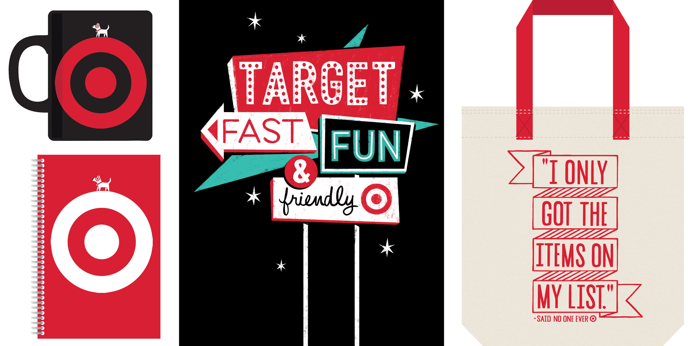Target Headquarters has a company store within their main office where workers and visiting guests can purchase limited edition Target branded products. I was asked to develop a few designs which were utilized on coffee mugs, notebooks, bags, t-shirts, and more!