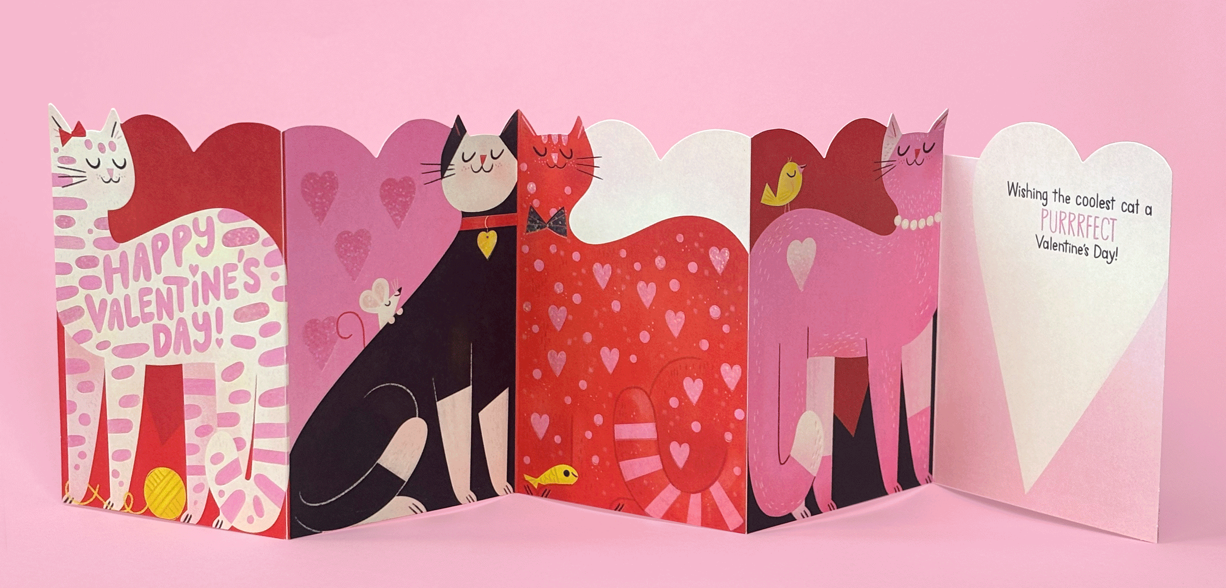 This project was my first opportunity to develop 5-panel greeting cards, and I loved having a larger, more interactive format to design within. I wanted each card to surprise and delight as the panels are opened.