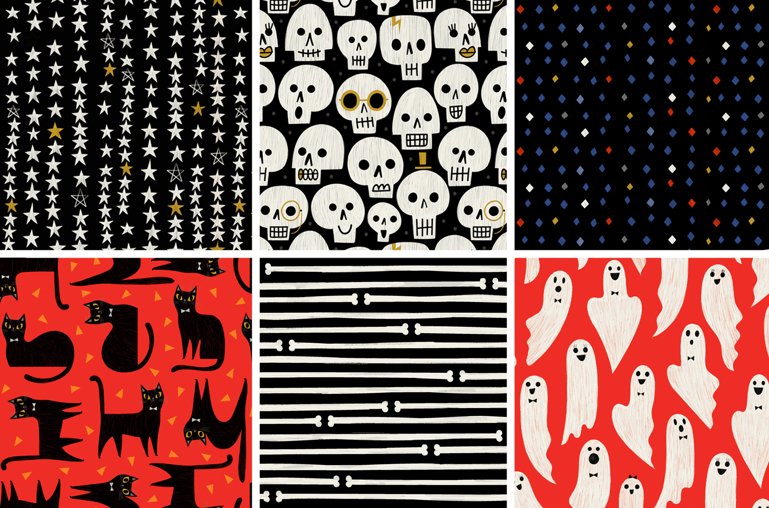 Patterns for Stories in the Dark were used on paper party supplies, soft decor, and found on stationery. Once again I developed a range from spooky to silly, character-focused to simple geometric to cover all Target’s needs.
