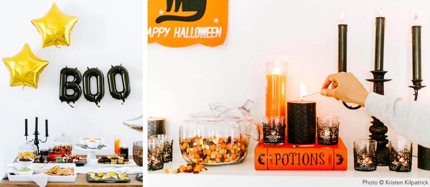 Creating the right art ensures the set is both family friendly and slightly spooky. Bold oranges and blues made some parts of the collection brighter and sweeter, while other parts were mainly black, cream and metallic. Those sections could be made more sophisticated and paired with more adult-focused decor.