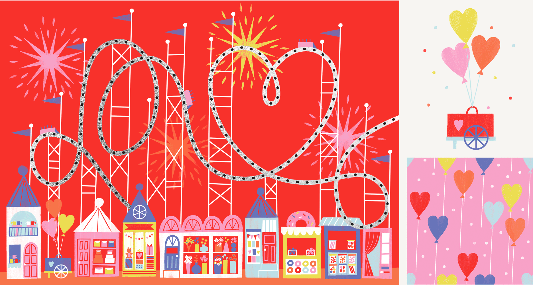 Papyrus saw artwork from my Little Kitty Big Adventure’s set and asked to utilize the art for a Valentine’s concept they were developing. I redesigned the carnival scene to have a heart roller-coaster. When a button is pushed, lights blink and roller-coaster sound-effects and screams can be heard!