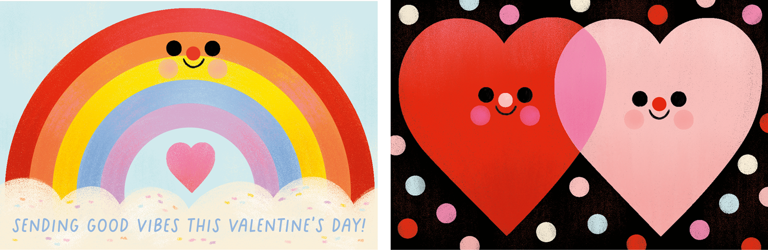 Z-fold cards are a format I use often for American Greetings. Each one is built around a bold central character, with die-cut edges shaped intentionally to frame the illustration and make them pop in stores.